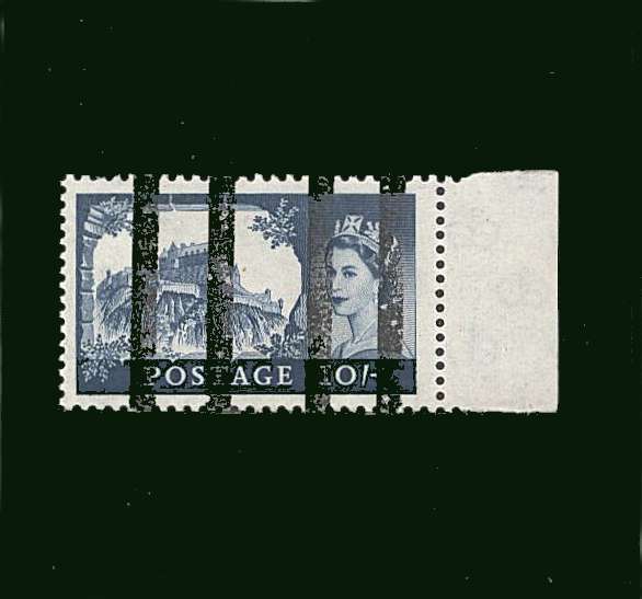 A very lightly mounted mint marginal stamp overprinted with Black Bars to prevent re-use by training staff at the Post Office Training School. Seldom seen these days! |