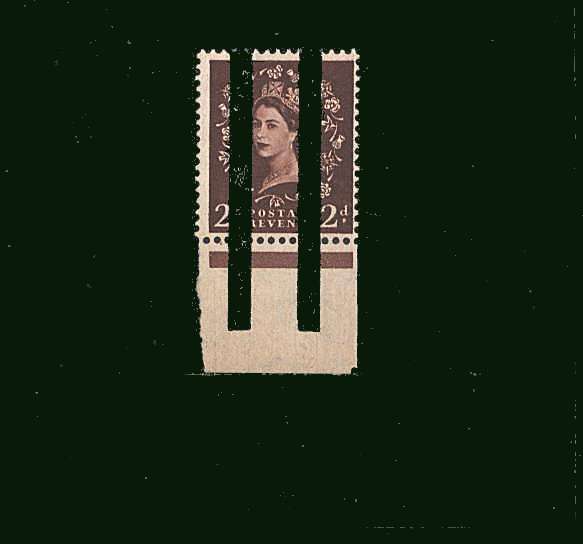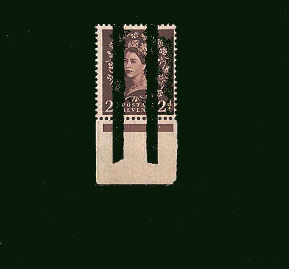An unmounted mint lower marginal stamp overprinted with Black Bars to prevent re-use by training staff at the Post Office Training School. Seldom seen these days! QQK |