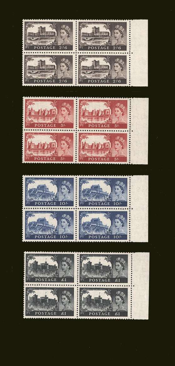 ''Castles'' printed by Waterlow In stunning bright and fresh superb unmounted mint right side marginal blocks of four. Lovely! KKR |