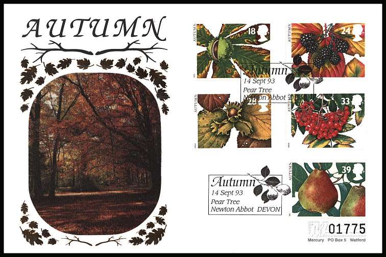 The Four Seasons - Autumn set of five on an unaddressed official Royal Mail FDC cancelled with the alternative FDI cancel for TAUNTON dated 14 SEPT 1993