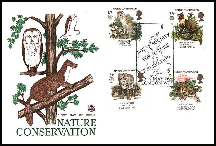 EUROPA - Nature Conversation set of four on an unaddressed Stuart FDC cancelled with a single strike of the ROYAL SOCIETY FOR NATURE CONSERVATION - LONDON W1 special handstamp dated 20TH MAY 86