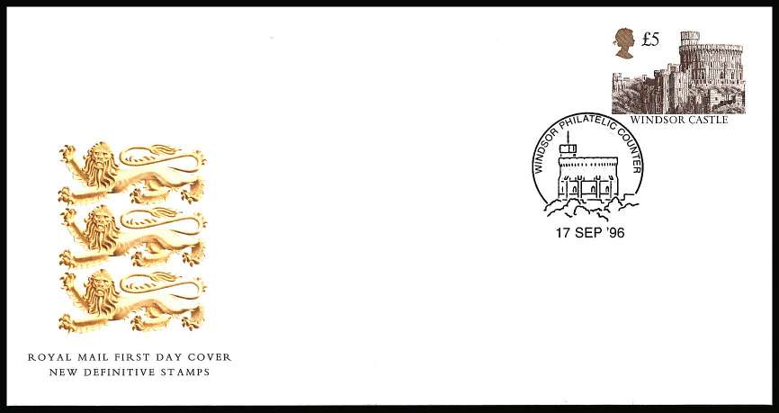 Gum change to PVA on an unaddressed official Royal Mail FDC cancelled with a WINDSOR PHILATELIC COUNTER handstamp dated 17 SEP '96