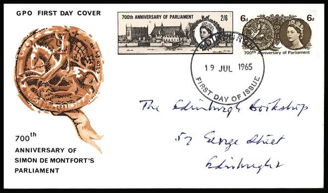 Parliament set of two on a hand addressed OFFICIAL G.P.O. FDC cancelled with a large FDI cancel for EDINBURGH dated 19 JUL 1965 |