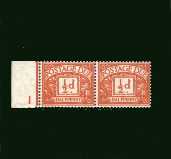 A superb unmounted mint horizontal marginal pair of this rare seldom seen shade.