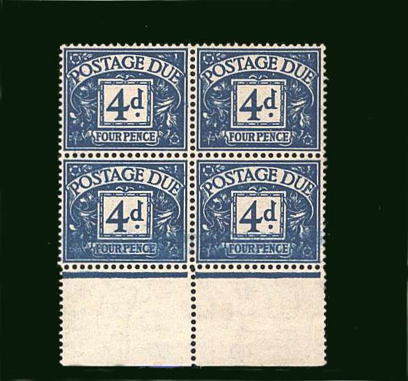 4d Blue - Watermark Tudor Crown in a superb unmounted mint lower marginal block of four. SG Cat £120 |