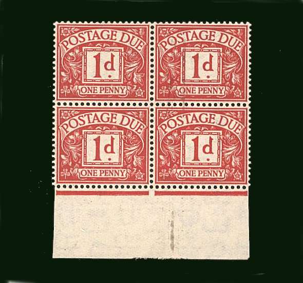 1d Carmine A superb unmounted mint lower marginal block of four.