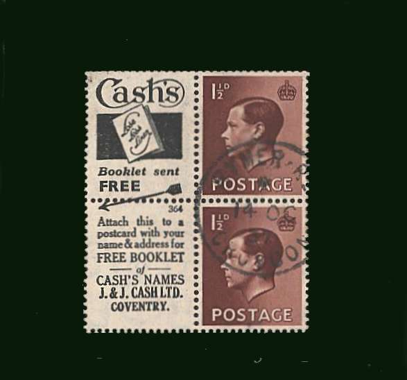 1½d part boooklet pane showing the Cash's labels adverts superb fine used.