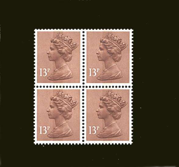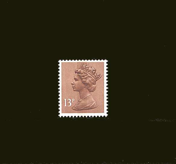 13p Pale Chestnut - Centre Band superb unmounted mint lower marginal positional pair showing a large downwards perforation shift thus placing the marginal rule partlky on the stamp. |
