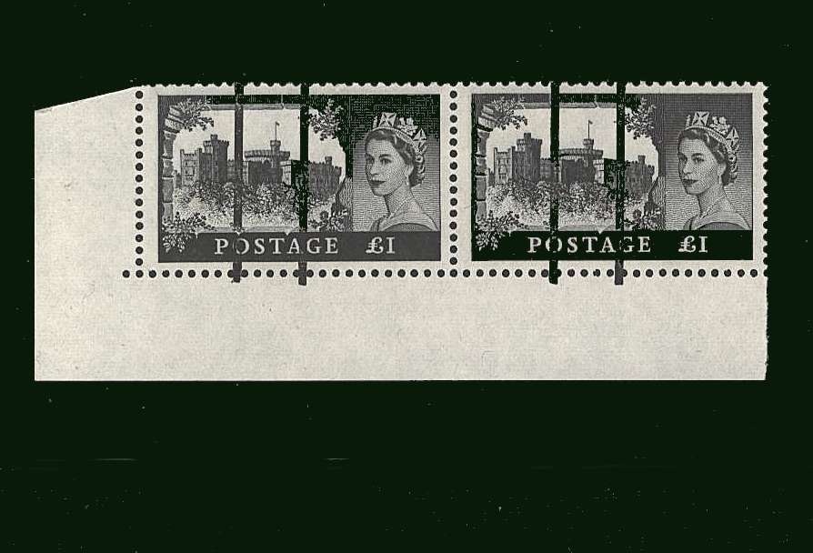 A very lightly mounted mint SW corner pair overprinted with Black Bars to prevent re-use by training staff at the Post Office Training School.