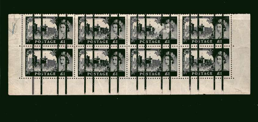 An unmounted mint marginal block of eight with gum creases overprinted with Black Bars to prevent re-use by training staff at the Post Office Training School.<br/><b>QQK</b> to your basket