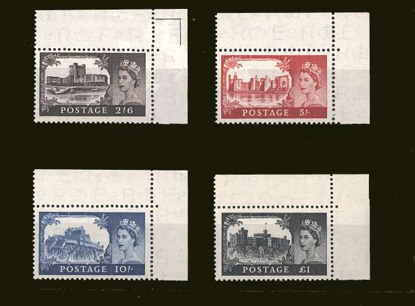 ''Castles'' printed by Waterlow A stunning superb unmounted mint set of four as NE corner singles. Lovely! KKR |