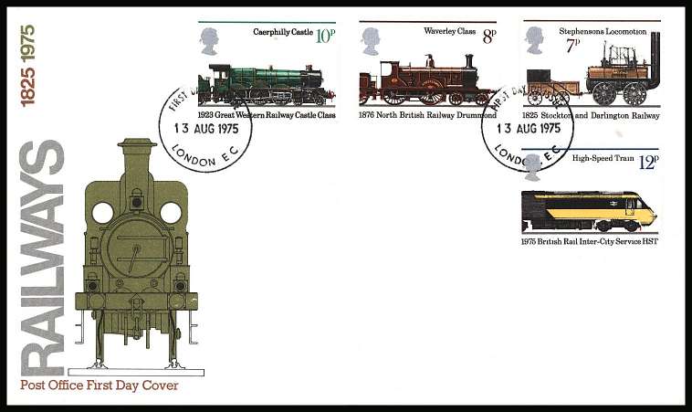 Public Railways set of four on official unaddressed Official Post Office FDC cancelled with a LONDON E.C. FDI dated 13 AUG 1975. |