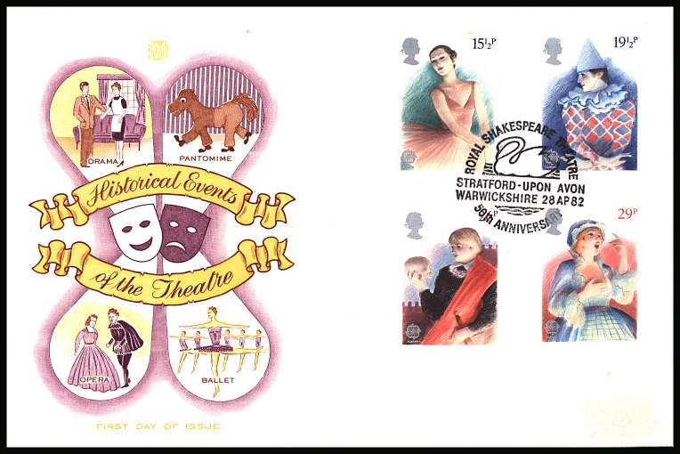 EUROPA - British Theatre set of four on a neatly typed addressed official Royal Mail FDC cancelled with a STRATFORD-UPON-AVON handstamp dated 28 APRIL 1982 |