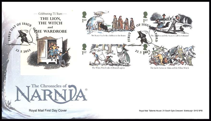 The Chronicles of Narnia minisheet on an unaddressed official Royal Mail FDC cancelled with the official alternative FDI cancel for OXFORD