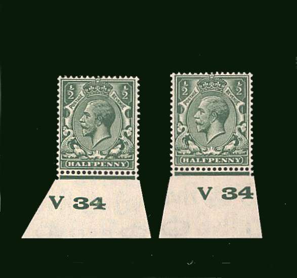 Two lightly mounted mint controls both showing the control V34 but in different positions |