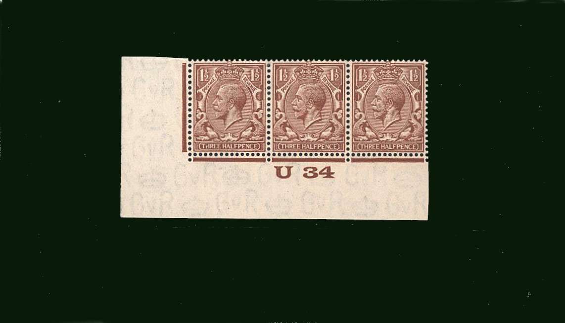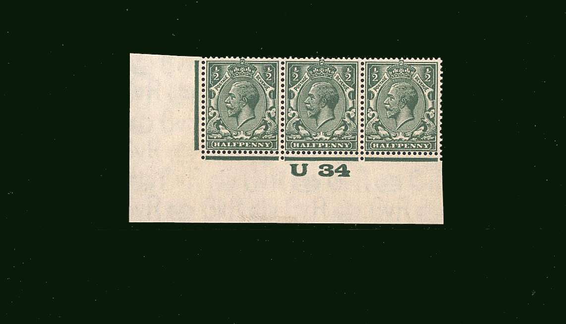 A superb unmounted mint control strip of three showing control U34 |
