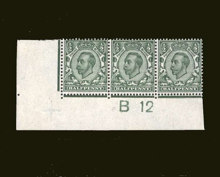A superb unmounted mint SW corner corner strip of three showing control ''B12'' - wide. SG Cat £50 KKR |