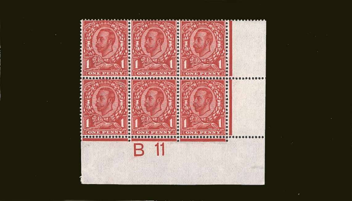 A superb unmounted mint SE corner control block of six showing ''B 11''. KKR |