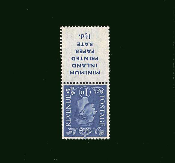1d Light Ultramarine INVERTED watermark booklet single with printed advert label 17mm high. |