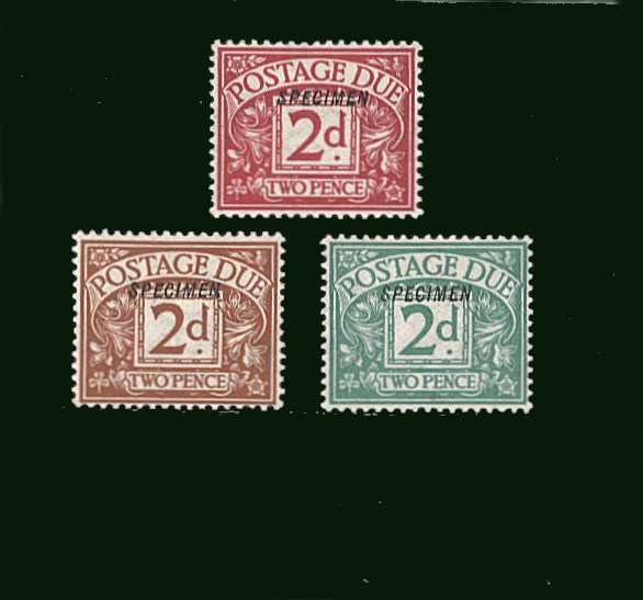 The complete set of three COLOUR TRIALS overprinted ''SPECIMEN'' Type 23 A very rare set to find especially unmounted!