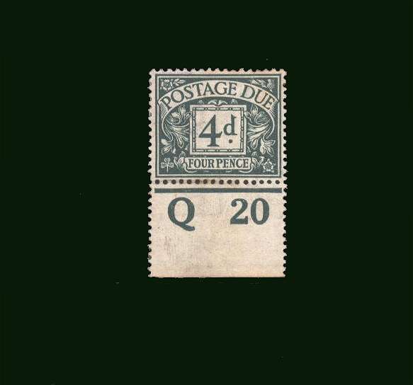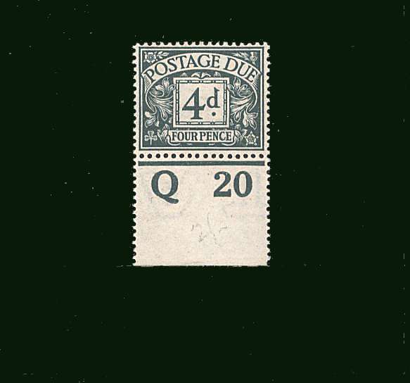 A fine lightly mounted mint control marginal single showing ''Q 20''.