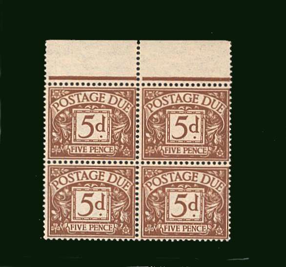 5d Yellow-Brown A superb unmounted mint top marginal block of four.