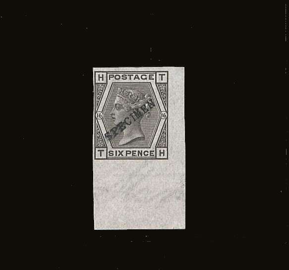 6d Grey from Plate 16 IMPERFORATE lettered ''T-H'' superb unmounted mint overprinted SPECIMEN type 9.