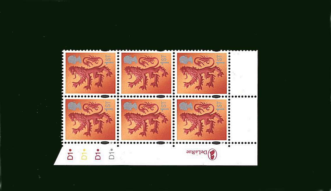 1st Class in a superb unmounted mint cylinder block of six showing cylinder numbers D1 DOT D1 DOT D1 DOT D1 DOT |