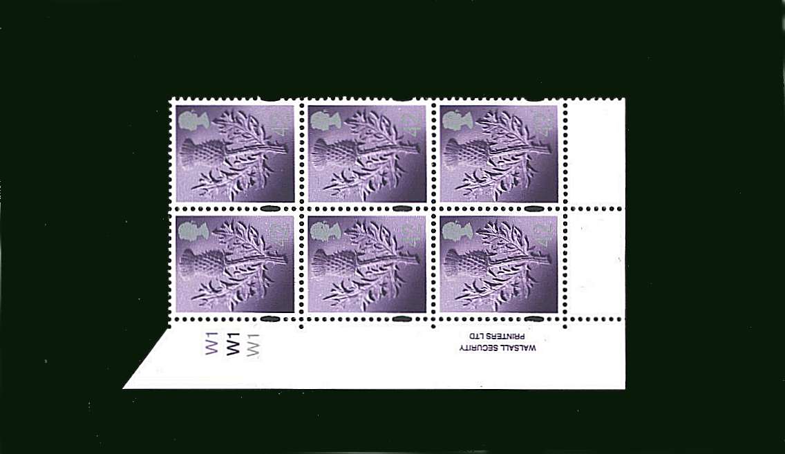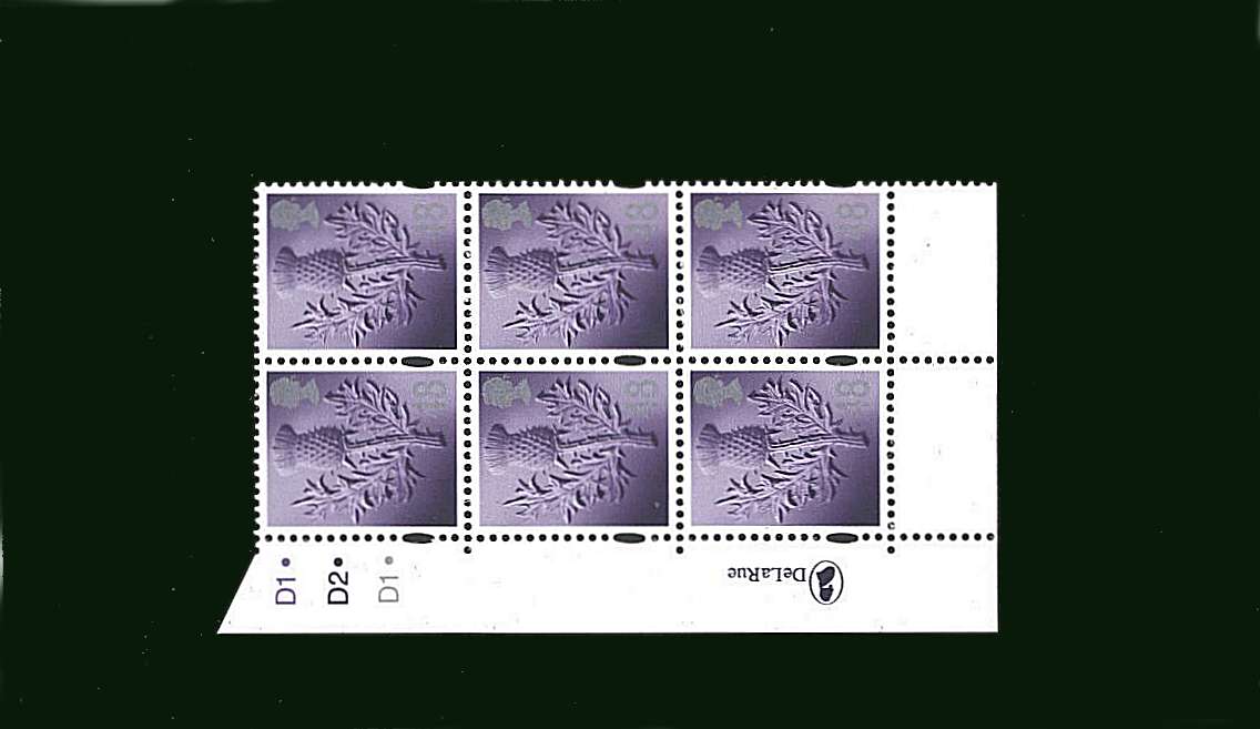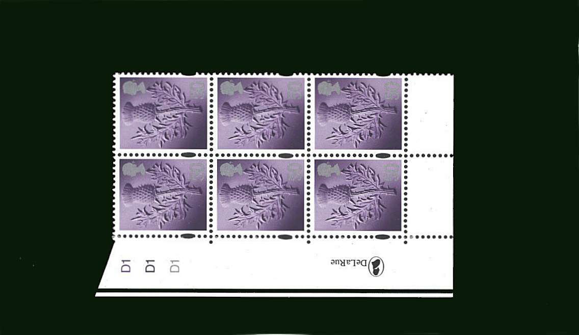 48p Bright Lilac, Deep Lilac and Silver in a superb unmounted mint cylinder block of six showing Cylinder D1 DOT D2 DOT D1 DOT |
