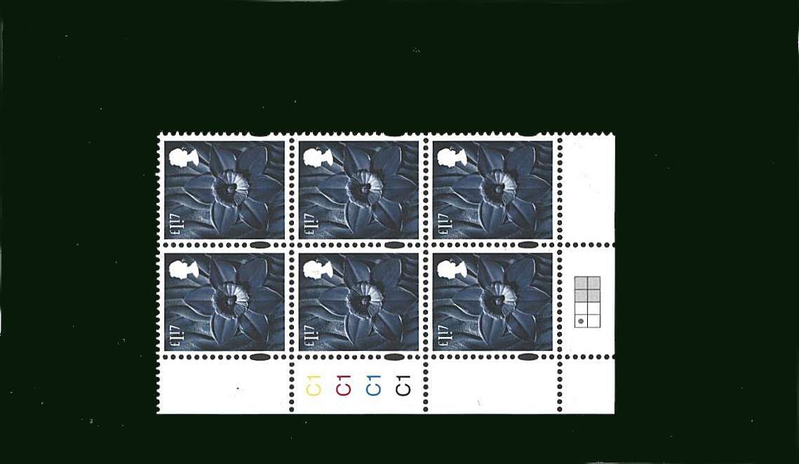 £17.00 Add British Stamps Regionals - Wales Item: add £1.40 Multicoloured<br/>in a superb unmounted mint cylinder block of six showing Cylinder C1 C1 C1 C1 to your basket